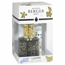 Confezione regalo in cartoncino griffata Lampe Berger completata daun flacone da 250ml di The Blanc Purete.