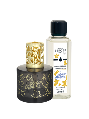 Confezione regalo in cartoncino griffata Lampe Berger completata daun flacone da 250ml di The Blanc Purete.