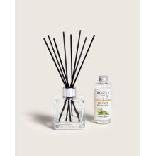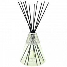 Questo bouquet profumato Starck Peau de Pierre è atipico, come il suo designer che ha prestato il suo nome e il suo talento alle creazioni frutto della sua collaborazione con la Maison Berger Paris. Le sue linee senza tempo, la sua forma semplice e raffinata trasformano questo oggetto di uso quotidiano in un oggetto iconico. La sua ispirazione estetica dalla vetreria di laboratorio porta una vera finezza di realizzazione. Riconoscibile tra tutti, il corpo del bouquet è ornato, nella parte superiore, da un anello di metallo con motivi di identità organica, con codici molecolari. L'intero segreto dell'originalità del bouquet profumato Starck Peau de Pierre sta nella sua suola curva, cucita e serigrafata. Il colore grigio gli conferisce quell'eleganza extra eterea, usata in riferimento al packaging del profumo per il corpo Peau de Pierre. Trasformato in una fragranza per interni, trova l'intensità piccante del bergamotto unita ai sentori floreali del gelsomino cosparsi di alcuni tocchi speziati e muschiati. Maschile, questa composizione olfattiva gioca sull'ambiguità affermando la sua quota di femminilità.