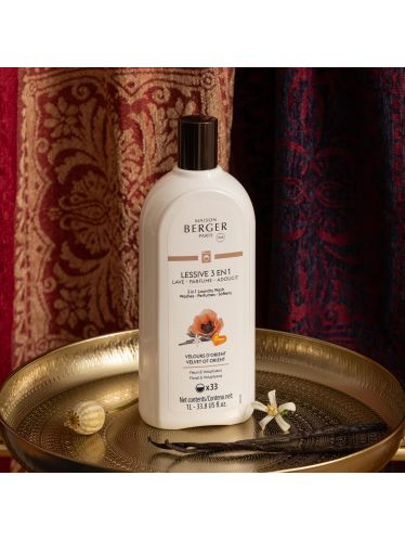 Perfetto per l'uso quotidiano, questo detersivo per bucato Oriental Velvet 3 in 1 da 1 litro è vegano, senza coloranti ed efficace a partire da 30°C. Grazie alla tecnologia di rilascio continuo della fragranza (microincapsulazione), la fragranza rimane impregnata nel tessuto anche dopo diversi giorni, regalando una duratura sensazione di comfort. Profuma e prenditi cura del tuo bucato con un prodotto sofisticato e accattivante fabbricato in Francia, rispettando i tuoi tessuti con la sua formulazione a base di cellulasi.
