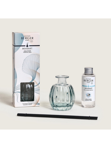 Il mini bouquet Corali Aqua Céleste si distingue per il raffinato flacone in vetro verde testurizzato, ispirato alla collezione Corali. Questa fragranza Maison Berger Paris si integra elegantemente in qualsiasi ambiente, aggiungendo un tocco decorativo sottile e luminoso. La fragranza Aqua Céleste offre un'esperienza olfattiva fresca e ariosa. Le note di testa marine, combinate con foglie di arancia e violetta, evocano la freschezza corroborante di una brezza costiera e la morbidezza della natura. Il cuore della fragranza, composto da salvia, mughetto e rosa, rivela una delicata armonia floreale, bilanciando freschezza e tenerezza. Le note di fondo, che fondono ambra grigia, muschio di quercia e patchouli, offrono una profondità legnosa e un tocco avvolgente, per un'atmosfera rilassante ed equilibrata. Grazie ai suoi bastoncini neri, questo bouquet diffonde ininterrottamente la fragranza Aqua Céleste per circa quattro settimane. Presentato in una raffinata confezione, è ideale come regalo o per coccolarsi.