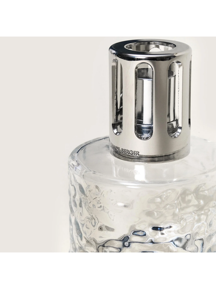 Migliora il tuo spazio con la scatola portalampada trasparente Berger Mirage. Il suo design ispirato alle stelle e il suo elegante rilievo evocano pura serenità. Lasciati trasportare dal profumo delicato e purificante del Thé Blanc Purité.