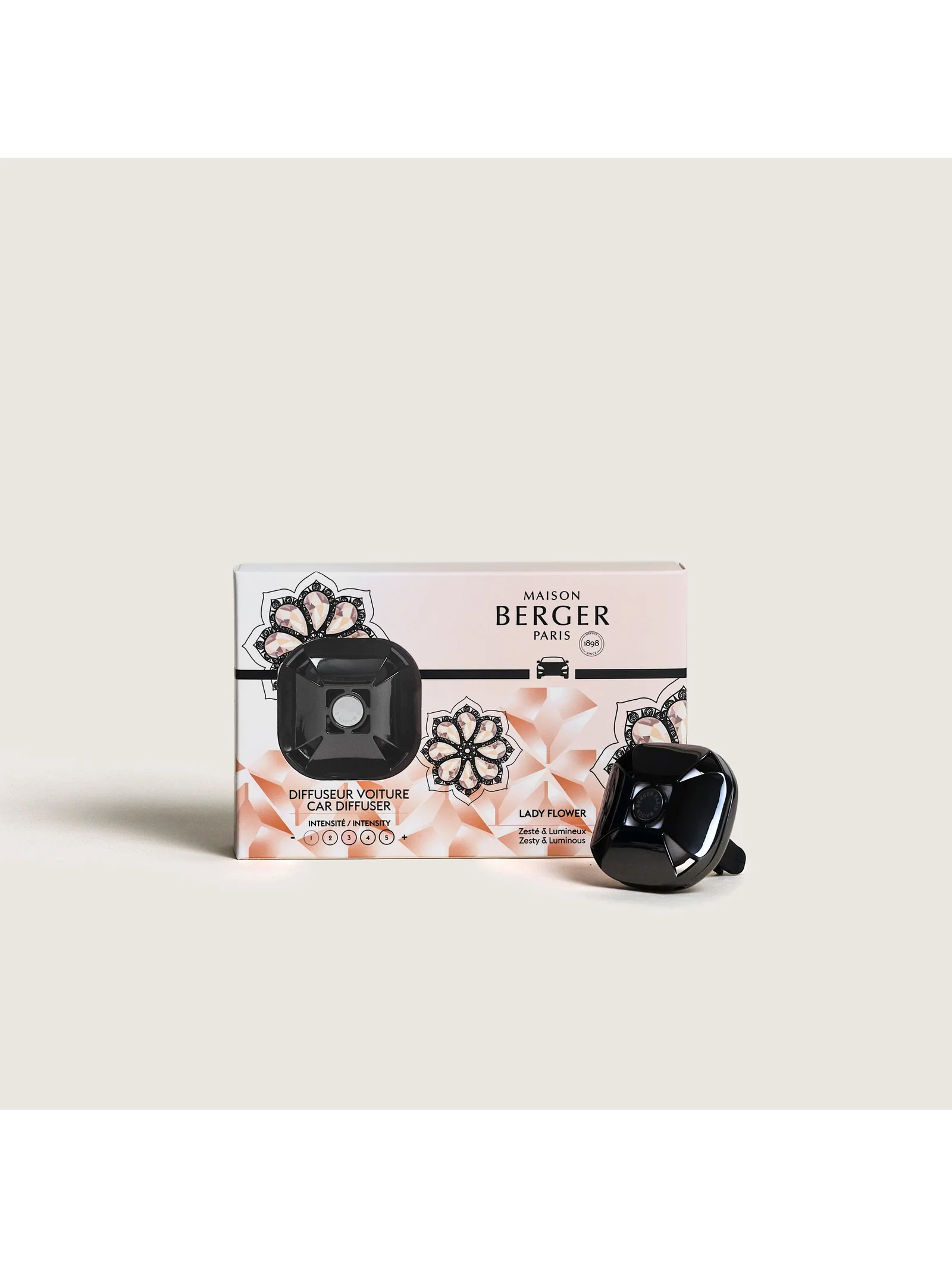 Il diffusore per auto Eternity Gun Metal, disegnato da Sylvie De France, unisce design sofisticato e funzionalità. Il suo design sfaccettato cattura la luce, esaltandone l'effetto metallico Gun Metal per un look moderno e raffinato. Un vero oggetto decorativo per l'abitacolo, che unisce estetica e prestazioni.