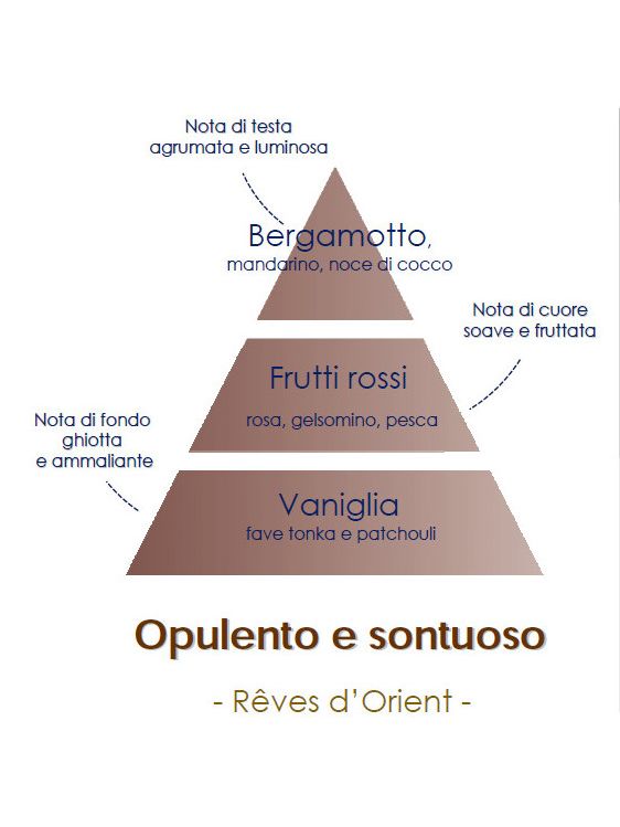 Un’atmosfera patchwork, indomita, eteroclita, con rilievo, che fa viaggiare lontano. Un profumo legnoso e ambrato, qualcosa di nuovo, di indescrivibile, un vero terreno di gioco olfattivo, una creazione originale e sorprendentemente equilibrata, con una dolcezza femminile richiamata dalle sinuosità fluide degli oggetti.